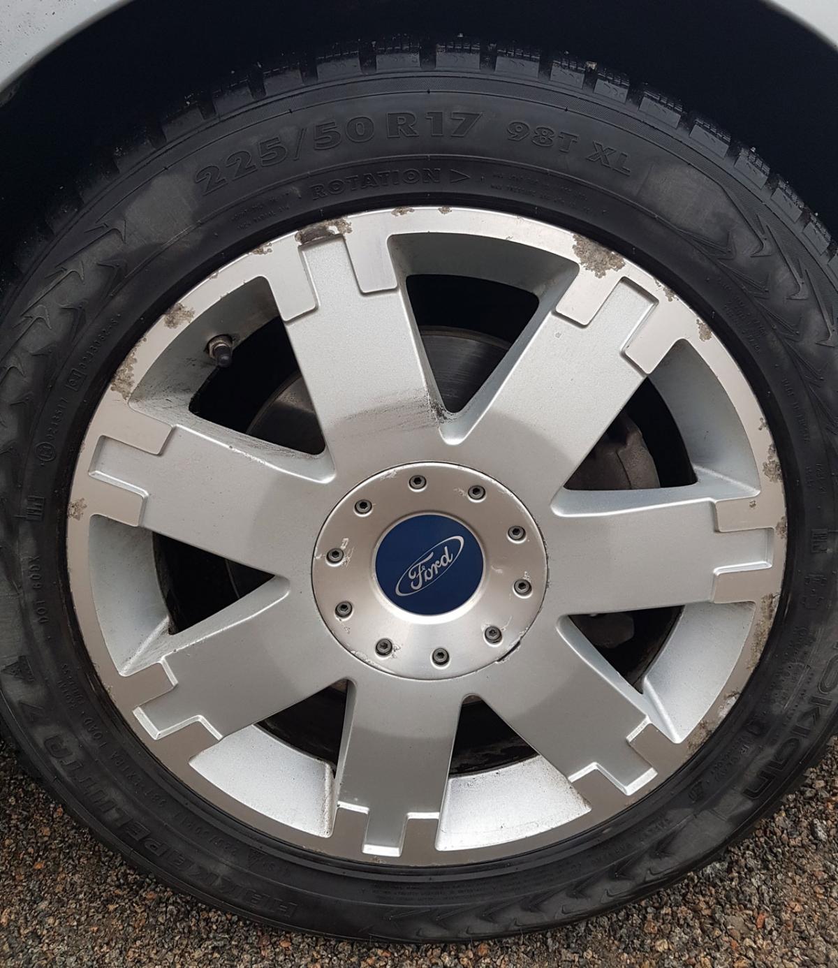 Selger et sett originale Ford felger. Stått på en 05 Mondeo stv Titanium X. Ikke strøkne men med litt pussing og lakk så blir de strøkne. Selges uten dekk for kr 800,-. Kan selges påmontert et sett Nokian Hakka Black 225/50ZR17 98XL (Extra Load) DOT 5115, kjørt en sesong, ca 5mm mønster igjen; Kr 3500,- Fikk 2 plass i fjorårets test. Tlf 41223729, Tønsberg.