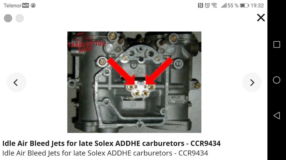 SierraCL Posted September 15, 2021 Author Posted September 15, 2021 Ok. Prøve 50 da og eventuelt borre opp. 10 år siden sist jeg dilla med detta, men mener det satt i 45 og det ble for tynt. Fant aldri dyser den gang (solex addhe) men nå ser det ut som det finnes på ebay. Har ikke noe slikt du da?
